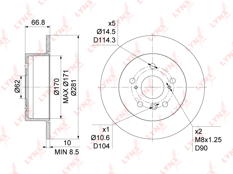 | Brake disk thickness disk, mm | 10 / MIN 8,5 |