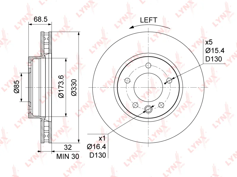 | Diameter holes, studs / PCD, mm | d 15,4 / PCD 130 |