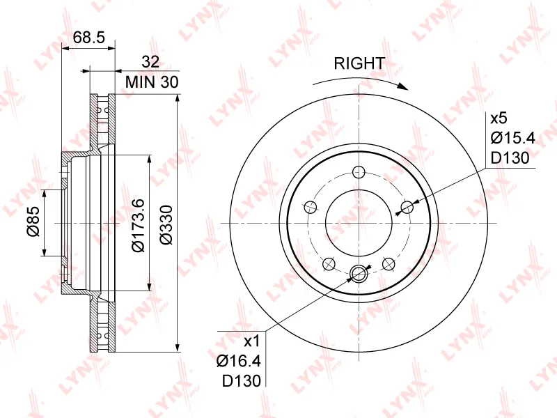 Diameter holes, studs / PCD, mm d 15,4 / PCD 130